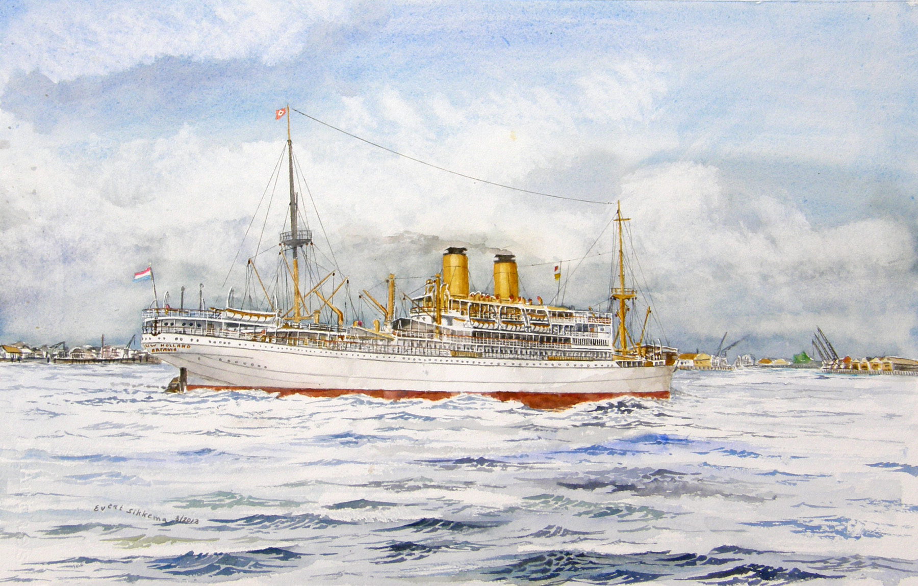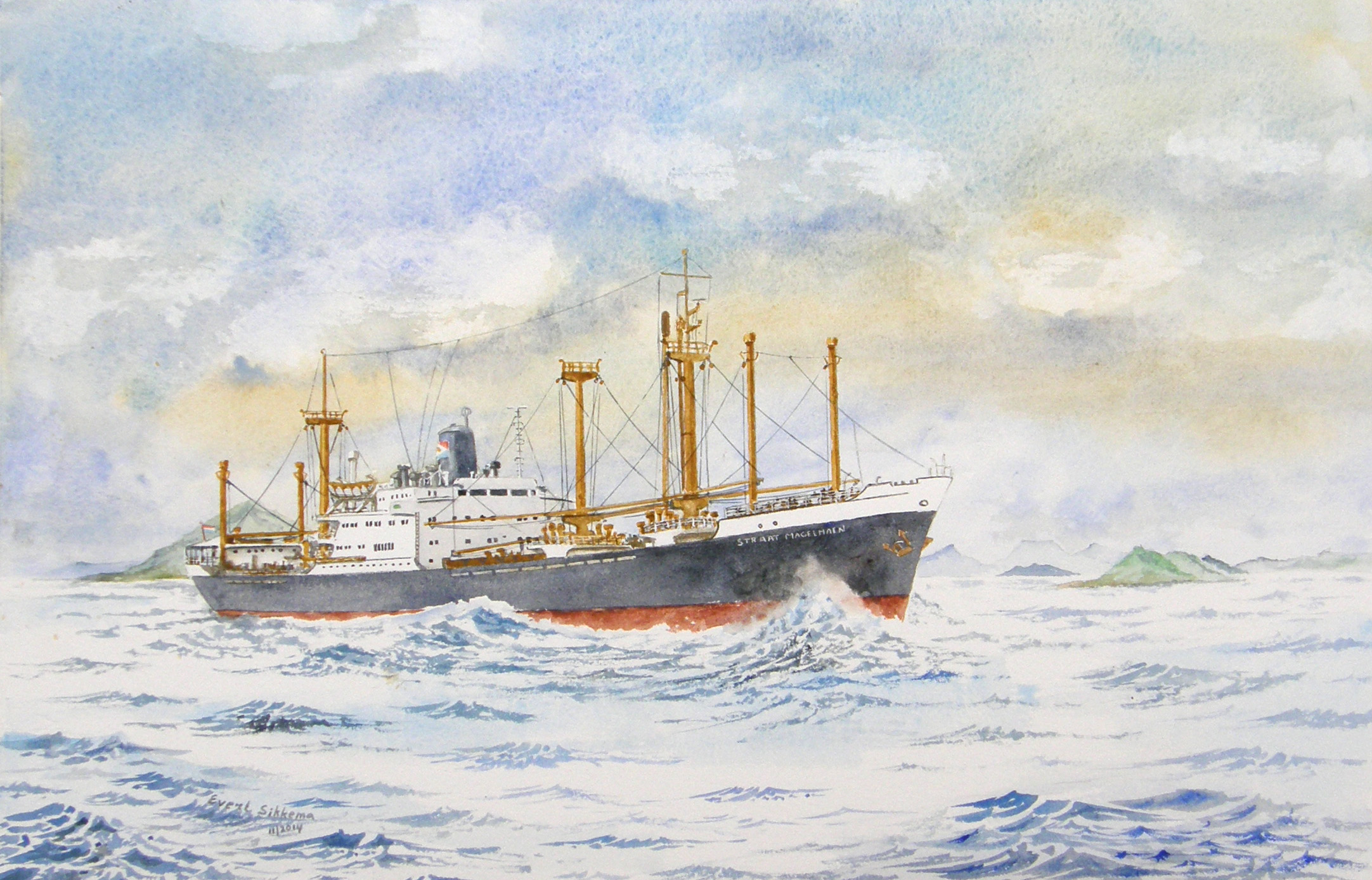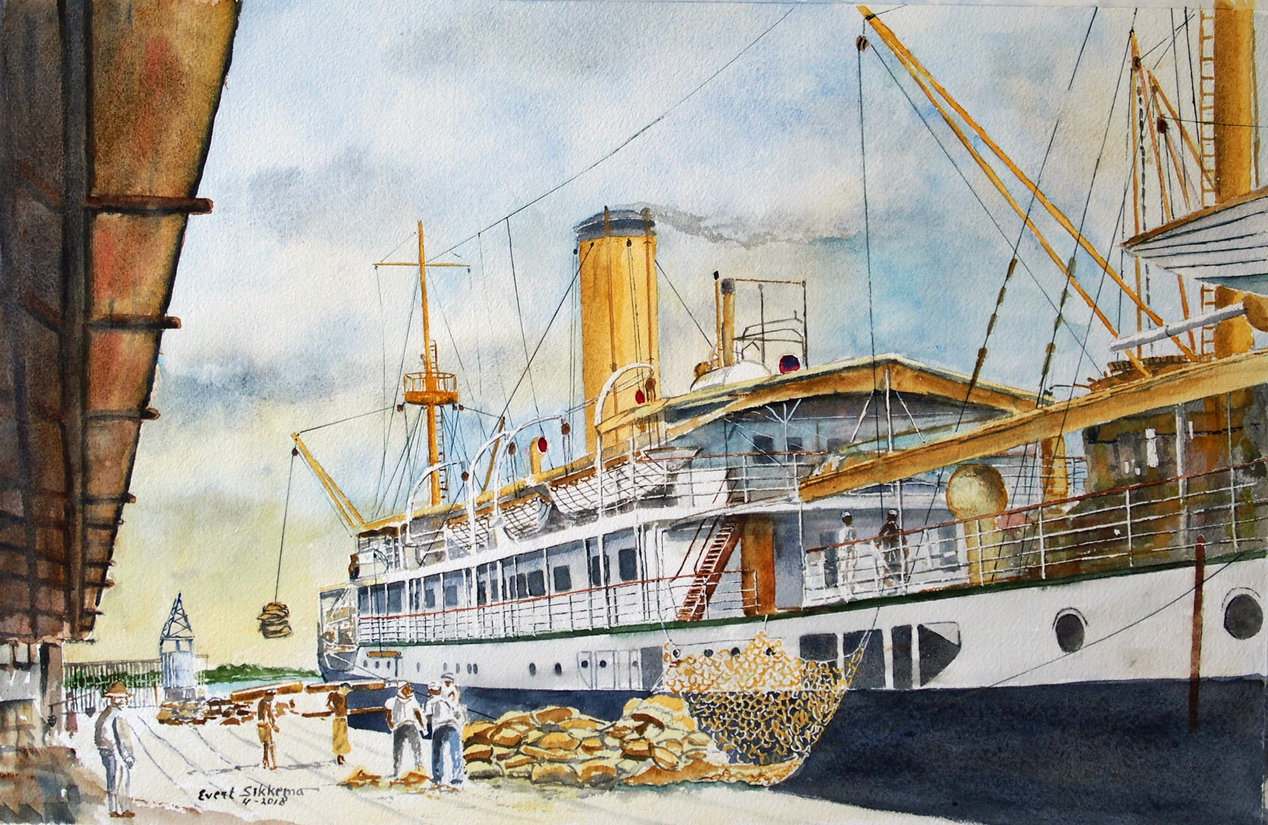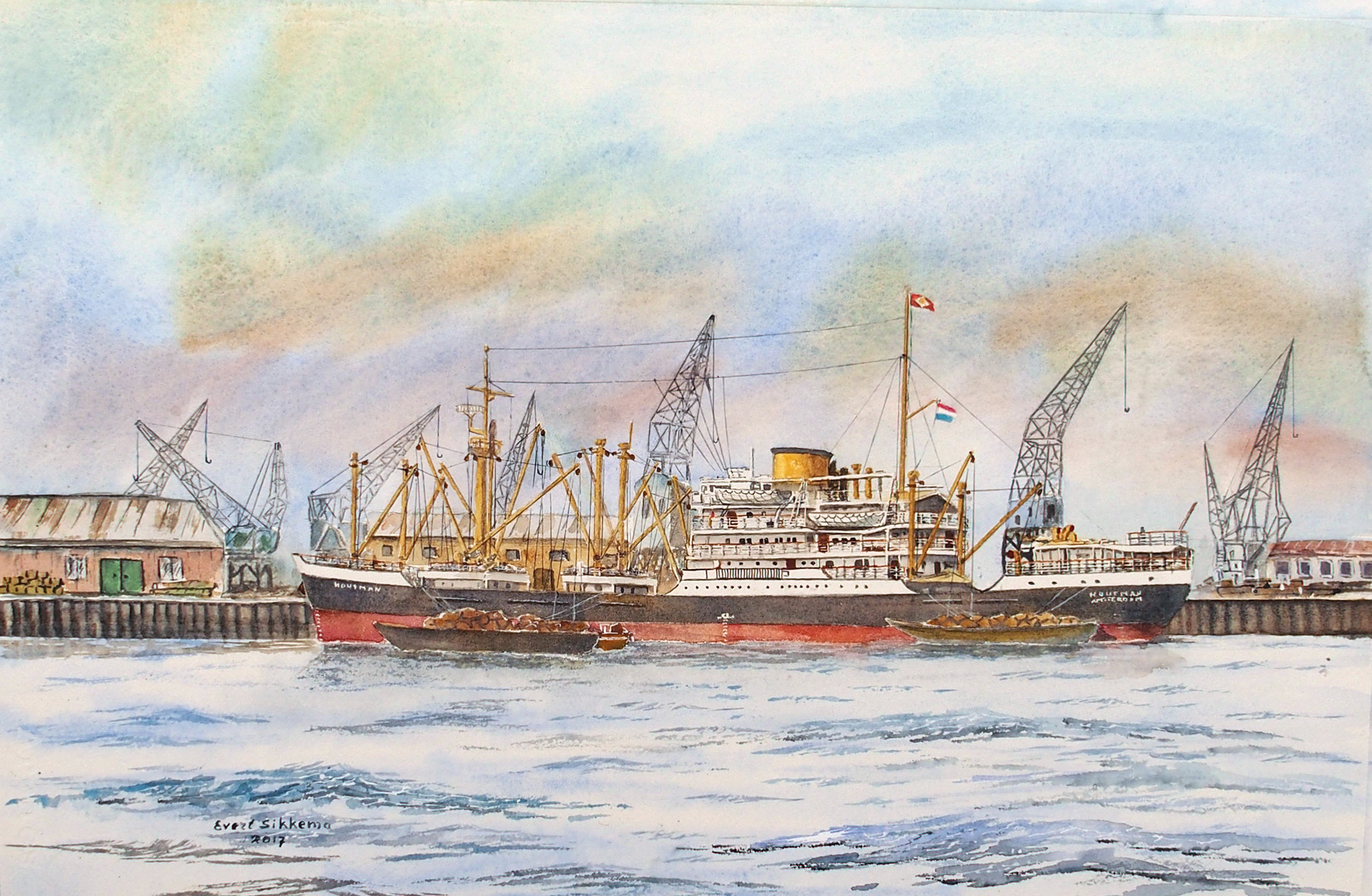 De ons allen bekende schilder Evert Sikkema heeft in zijn carriere een zeer groot aantal schepen geportreteerd in aquarel.